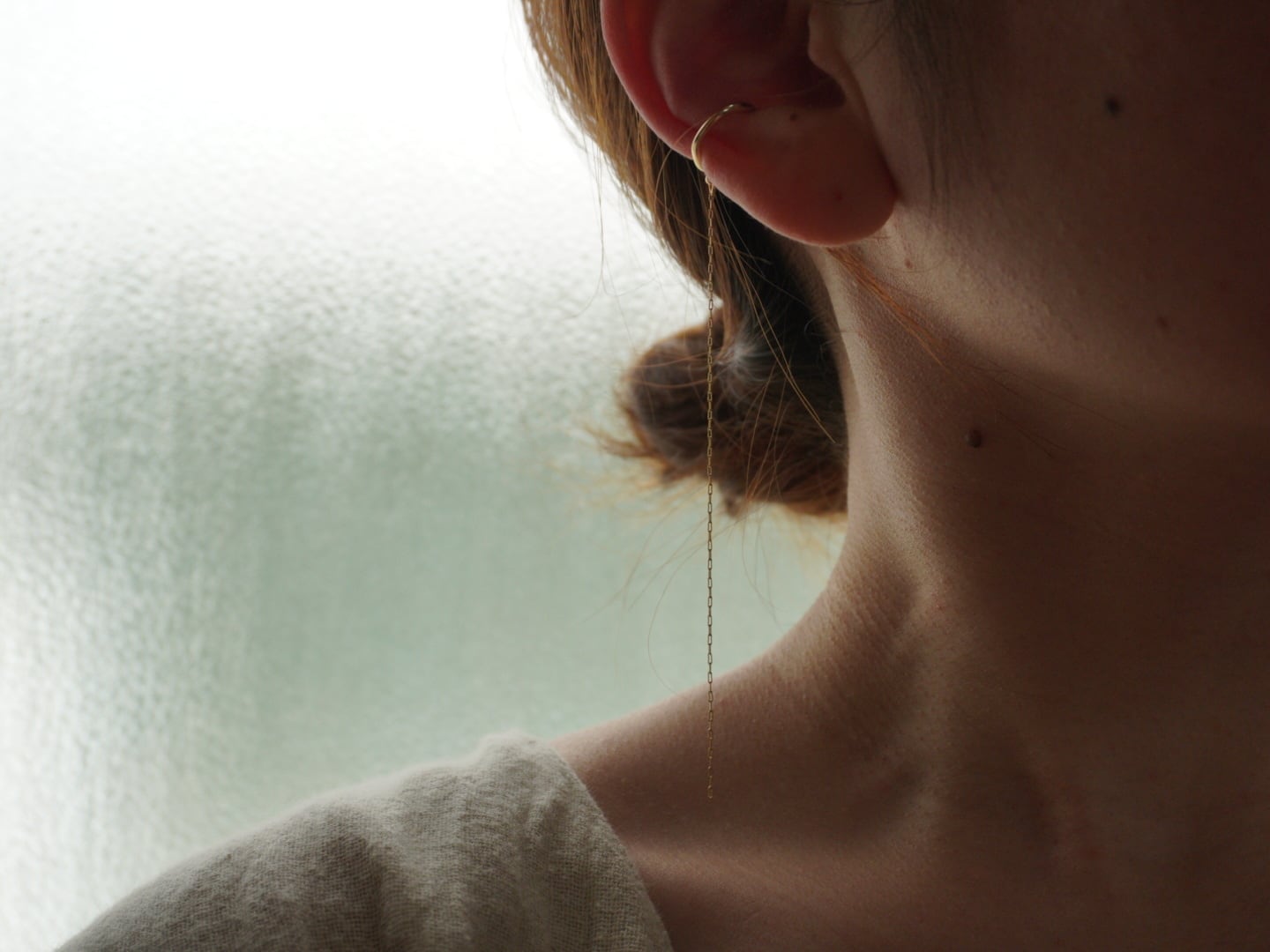 manaeらしい、繊細なチェーンがどんな装いにも溶け込むイヤカフ。