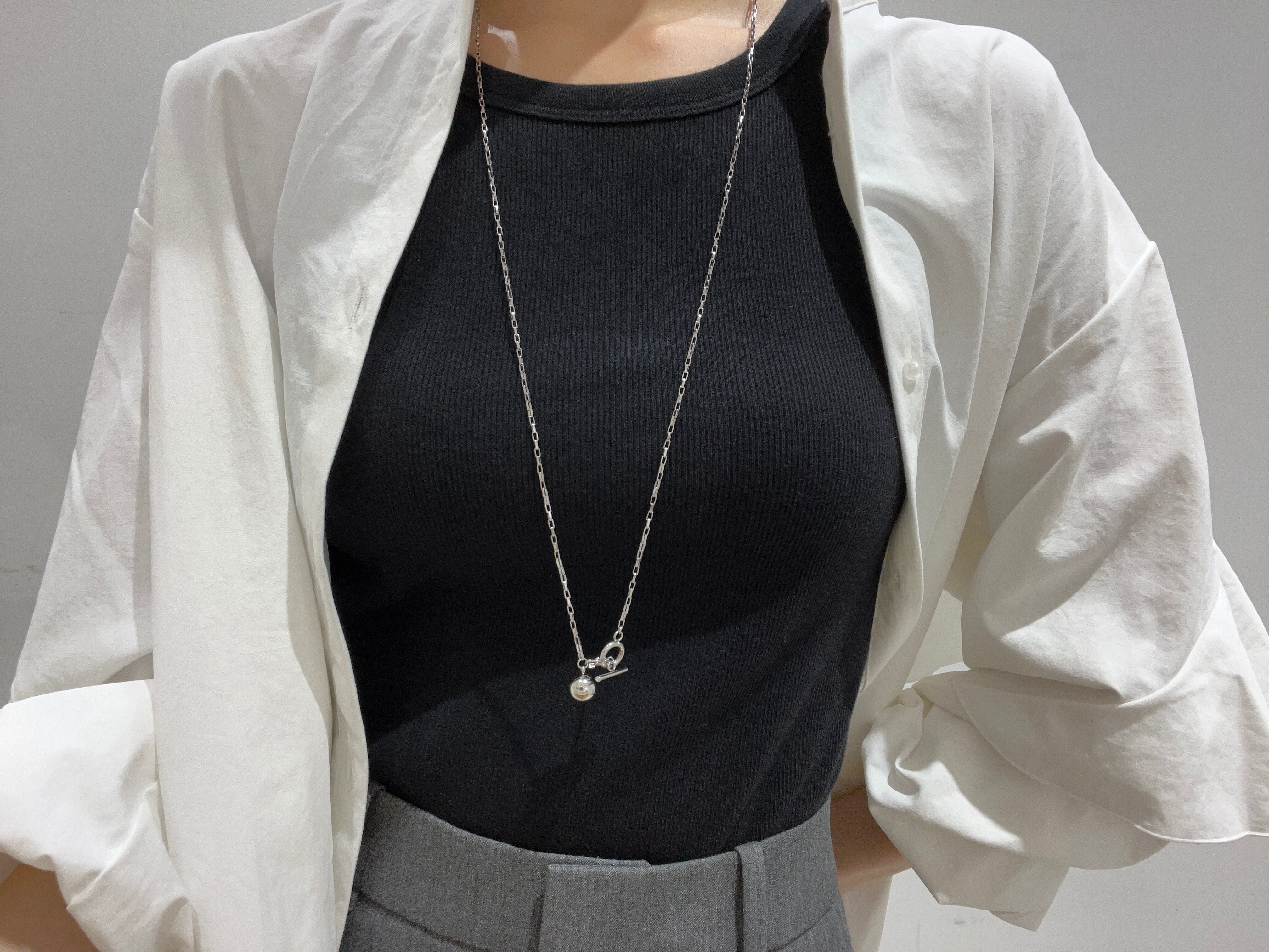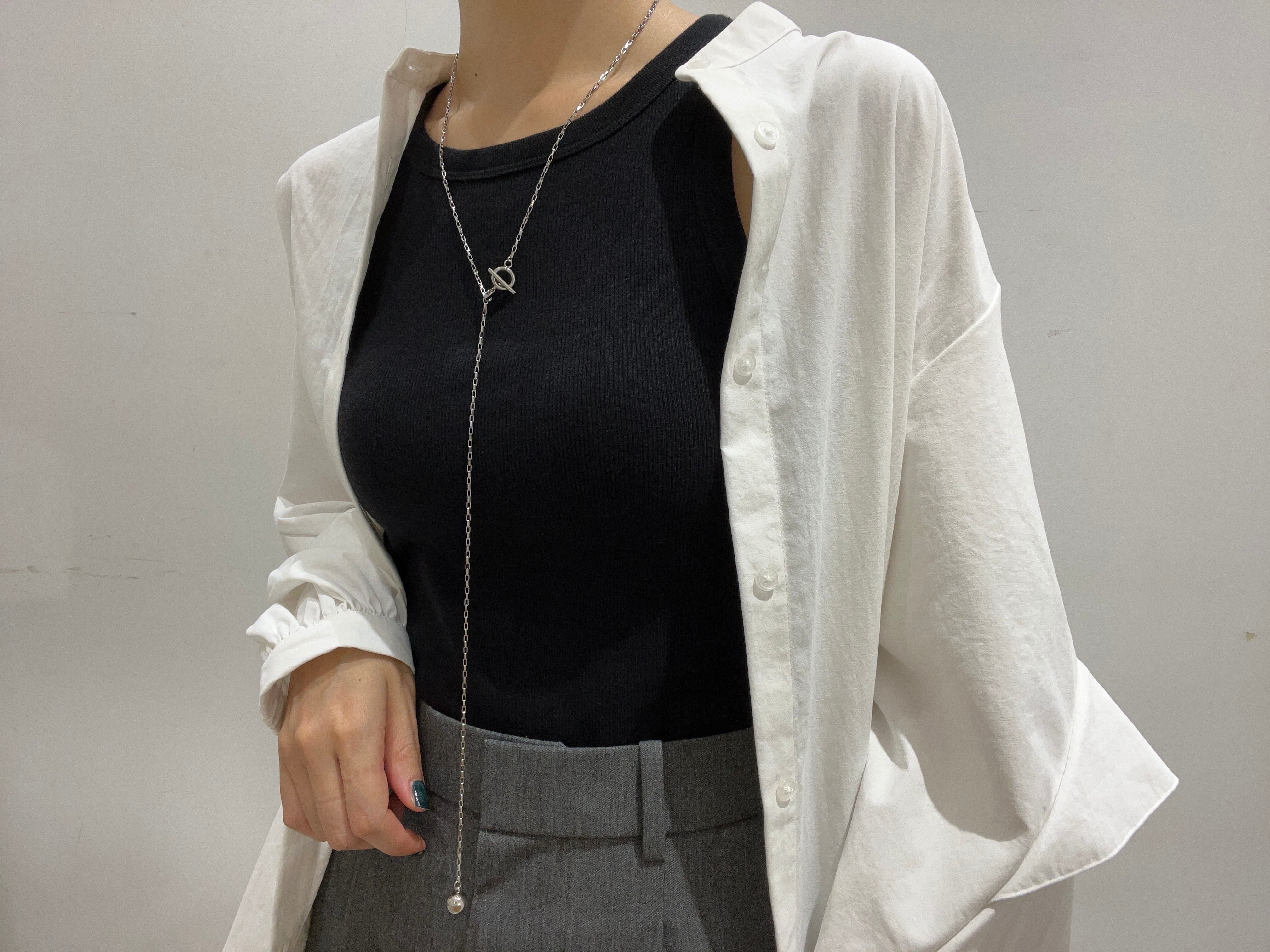 お肌に優しいステンレス製のロングチェーンネックレス。