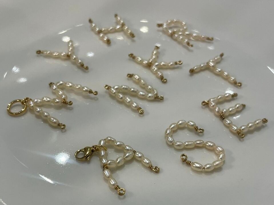 イニシャルチャームとサージカルステンレスチェーンネックレスのセットページです。 繊細な小豆チェーンが淡水パールのチャームを引き立てます。 ・size : チェーン約40cm+アジャスター5cm ・素材 : サージカルステンレス